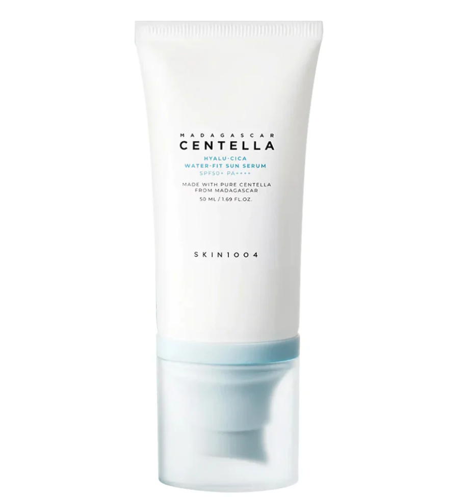 - Fitted with SPF 50+ PA++++, this serum-like sunscreen containing Hyaluronic Acid and Centella Asiatica Extract soothes and hydrates skin while providing sun protection.